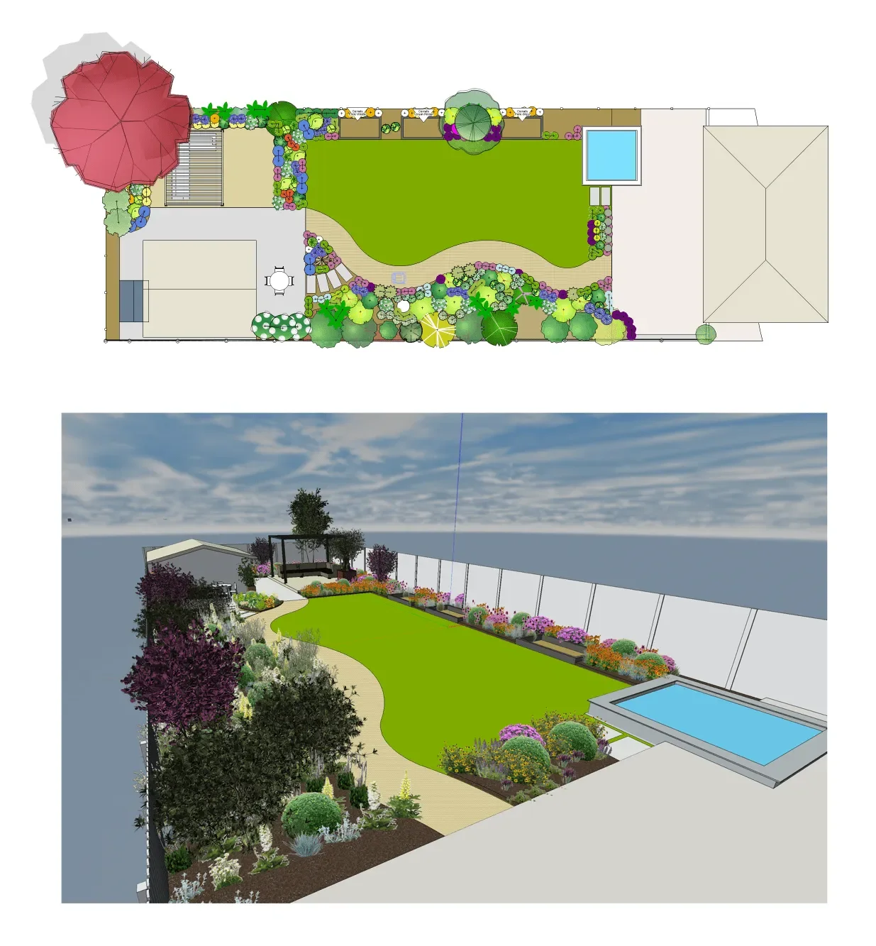 The brief called for a low-maintenance yet visually striking garden, so we incorporated a full irrigation system throughout the planting beds and lawn. This ensures the space remains lush and healthy year-round, even when the family is away.